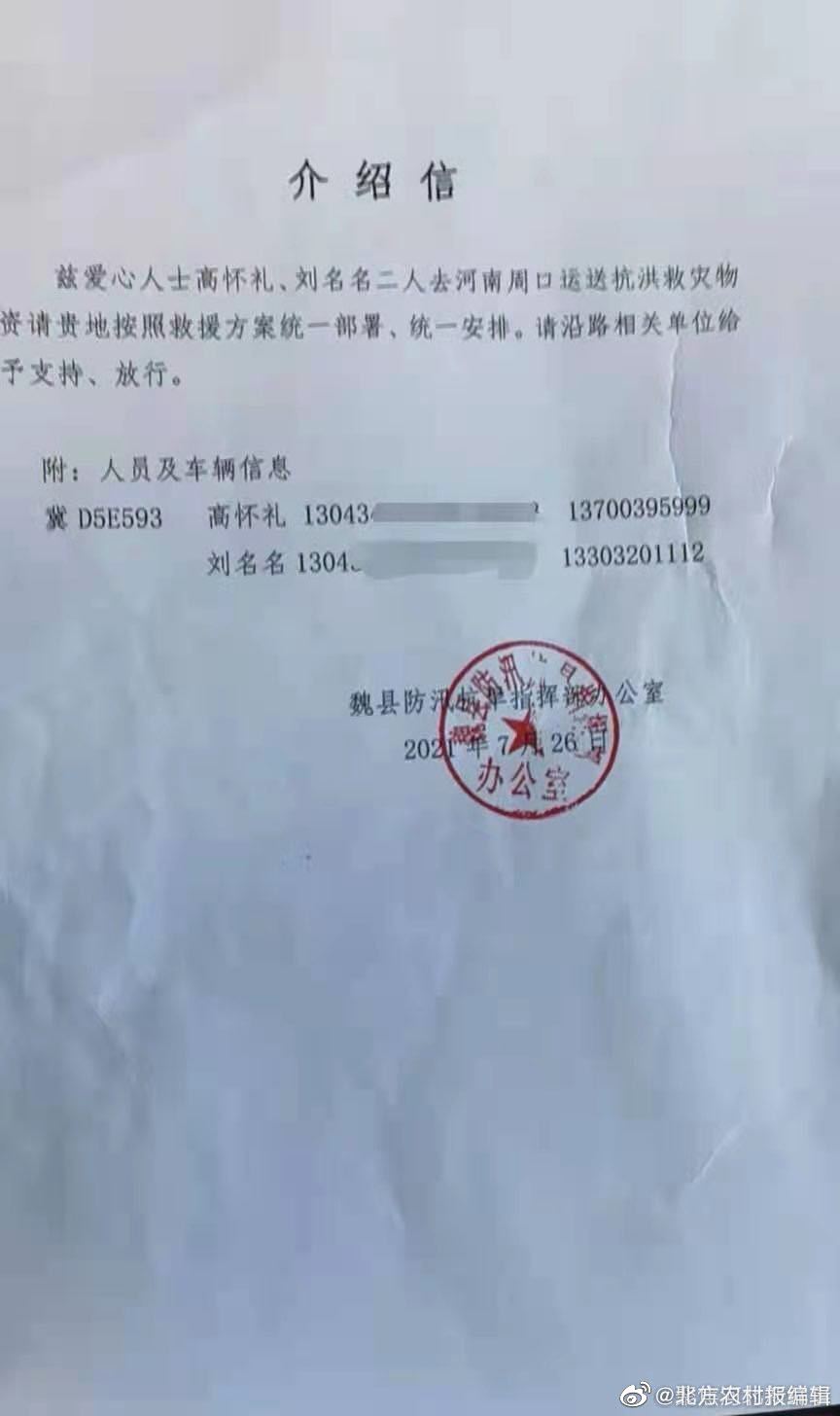 千年一遇的水灾降临河南,这也牵动了全国人民的心,全国各地的志愿者团队,第一时间就纷纷前往,参加抗洪抢险。投桃报李,河南人对全国各地的志愿者也都表现出了浓浓的爱心。上至八九十老人,下到十岁左右的孩子都当起了志愿者。一位妈妈带个十岁左右的孩子,拦截车辆,小孩跑过来喊叔叔吃点包子;在救援现场,一名11岁小女孩,手拿矿泉水,见邯郸救援队,马上喊“叔叔喝水”;多少群众熬大锅菜、熬绿豆汤让救援队员喝;老奶奶将家里仅剩的20多个笨鸡蛋煮熟送给我们;当我的汽车需要修理时,汽修工人跑十里地过来维修,当我们说算账时,修理工说你们跑这么远支援我们不会收你们的钱,我们感谢你们还来不及。可是作为近邻的邯郸高速收费人员,麻木不仁,没有一点人情味,见钱眼开,要想此路过,交下过路费,希望邯郸高速工作人员上班时把你们的人心带上,省的上班时没有了人心。无偿地为河南灾区运送救灾物资,但在返程中却被大广高速邯郸市大名县收费站收取了高速通行费,司机老高想不明白:河北河南两兄弟,差别咋这么大呢?这已经是邯郸市的收费站又一次对救灾车辆收取高速通行费了。老高是邯郸市魏县人。26日,他开车将河北省慈善联合基金会筹集的救灾物资送往河南灾区。临行前,他找省慈善联合基金会和县里的防汛抗旱指挥部开具了证明,希望能在途中少些麻烦。27日,在河南省周口市扶沟县卸货完毕,他立即往回返。结果在大广高速邯郸市大名县高速出口,被收取了高速通行费,虽然老高拿出了证明,但收费人员说“没有接到通知,不能免费”。老高说,在河南省短短两天,感受到了浓浓的热情:救灾车辆免收通行费……没有对比就没有伤害,邯郸市大名县高速收费站的做法让我很难受。作为主管单位,河北省交通厅能否早点出台规定:哪些车辆可以免费,凭哪一级的证明可以免费,在法律之外多点人情。相信志愿者们出车出人加油,也没把这点通行费放在眼里,但现在一句冷冰冰的“没有通知,不能免费”,让志愿者心理都很难受。
