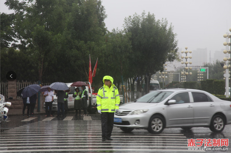 在雨中,执勤交警变“浇警”,竭尽全力保畅通,他们穿着黄色的雨衣,组成了一道道绚丽多彩的风景,有效保障了雨天道路交通安全畅通有序和广大人民群众的出行安全。