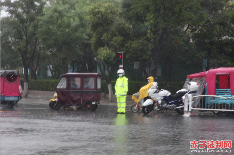 赤子法治网.讯(通讯员:燕博宇 袁飞 杨红治 程红伟)6月17日早上,商丘辖区出现持续降雨,导致部分路段积水严重,影响道路正常通行,造成校园周边等局部区域交通拥堵。