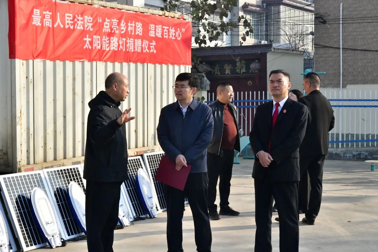 企业质量观察网.讯 记者:燕昊 通讯员: 张建峰 孙军 赵龙飞 张世杰 梁国杰 11月5日,最高人民法院为河南省商丘市睢县法院定点帮扶联系村凤城街道保庙村捐赠太阳能路灯。最高人民法院派驻睢县挂职副县长张政亮,睢县法院党组书记、代院长刘一宇,睢县法院驻保庙村工作队,凤城街道、保庙村干部等参加捐赠仪式。