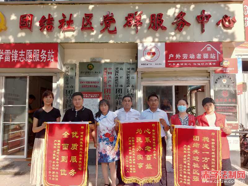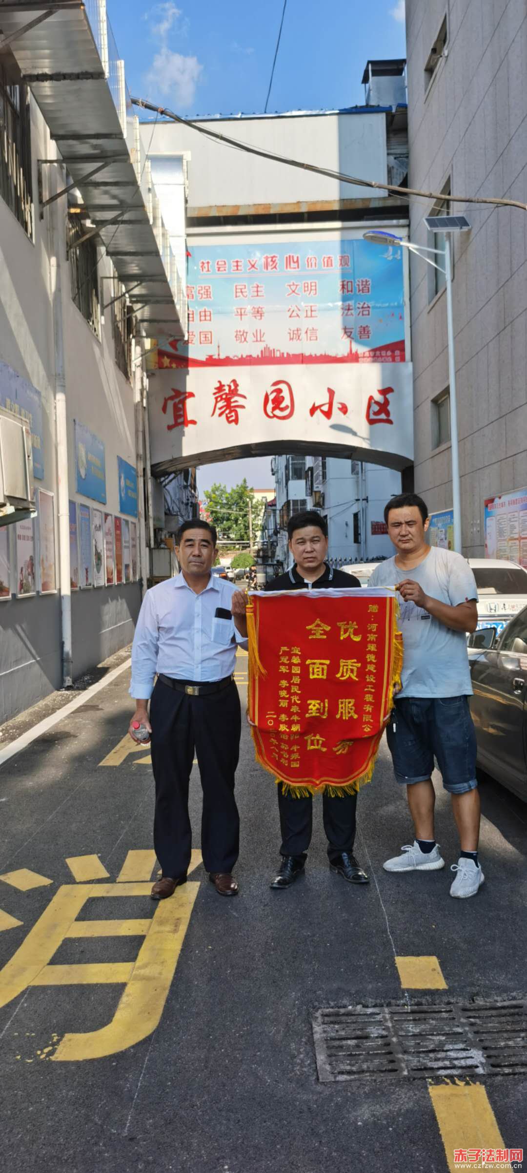赤子杂志网.讯(通讯员:燕博宇 程红伟 刘柱)2020年8月18日宜馨园小区居民代表为表达对办事处领导,社区工作人员及施工方的感激之情,把三面锦旗送到了团结社区,