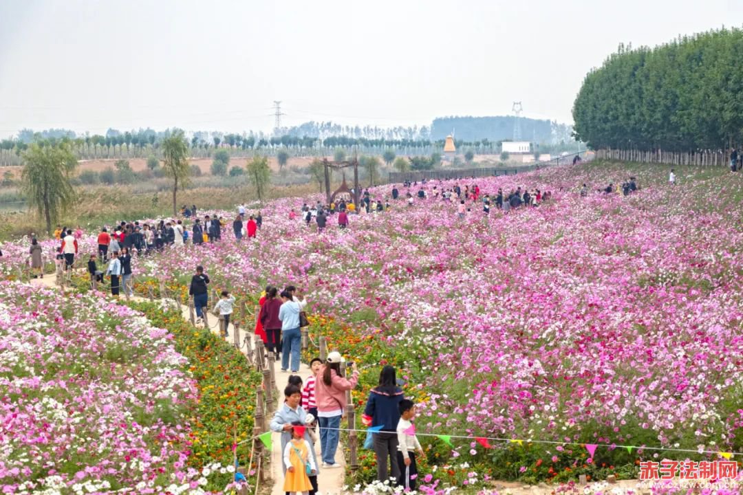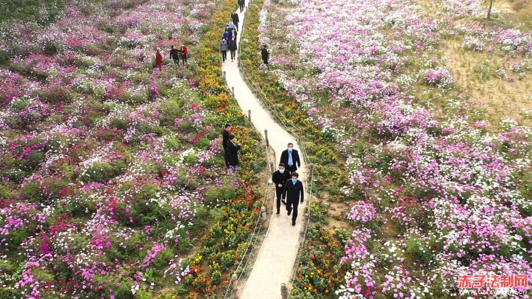 在虬龙沟南岸的湿地花海基地内,看到许多游客在尽情的观光游览、拍视频发抖音,大家感到非常兴奋。对龙港湾集团发展乡村旅游、改善人居环境、解决村民就业、实现精准帮扶的先进做法给予了一致好评。