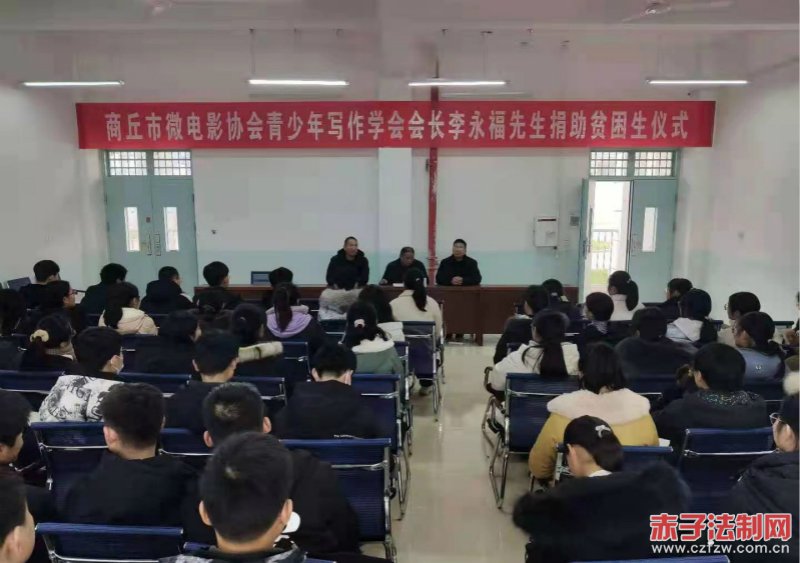 赤子法治新闻网.讯(通讯员:李辉 马迎军) 12月28日上午,商丘市微电影协会青少年写作学会会长李永福为我校贫困学生捐赠学习卡仪式在新校区教学楼一楼会议室隆重举行。学会会长李永福,学校党委副书记、副校长马洪思,副校长杜红彪以及高一年级部分学生代表参加了捐赠仪式。仪式由杜红彪副校长主持。