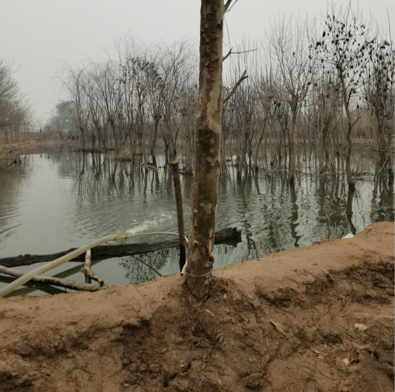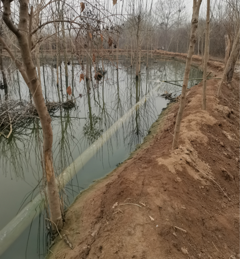 天泽园小区位于路河镇北连霍高速路口南300米处,记者到现场发现,污水是有两条管道不停从小区往外排放,没做任何排污处理,直接流至附近老关庄村,村旁的大坑已经被污水注满,约7亩左右的土地被污水覆盖,路边树木及地里果树被淹死,道路上满是臭水垃圾,方圆几里臭气熏天。