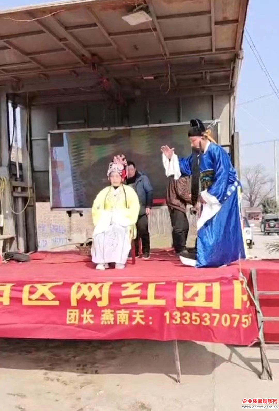 在商丘市睢阳区坞墙镇晋庄村党支部书记赵玲芝、副支书赵善礼、村委会主任晋发亮和乡贤刘涛的陪同下,在庙会上,我们看到乡村本土网红燕南天和他的队友,正在给乡亲们表演节目,通过农民喜闻乐见的方式记录日常生活,推广农副产品,展现乡村美景,从各个角度描绘乡村振兴新农村风貌,唱响了现代版的田园牧歌,通过网络直播间方式呈现在全国网友面前,成为备受欢迎的乡村代言人。