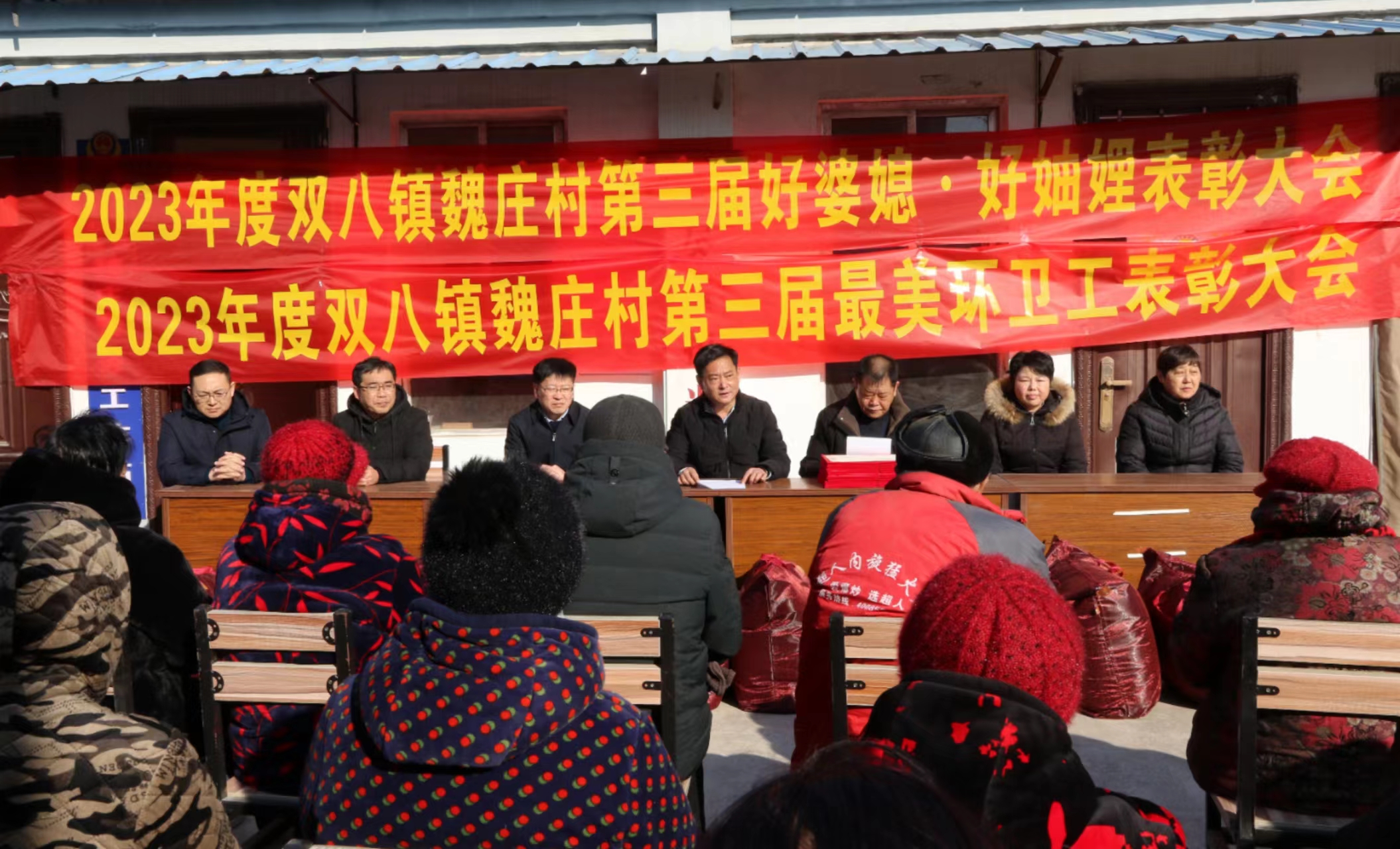 业质量观察网.讯 记者:燕昊 通讯员:刘成宏 张大文 薛利 刘威威 2024年1月24日,商丘市梁园区双八镇魏庄村村室院内人头攒动,彩旗飘扬,简易组建的舞台前摆满了奖品和荣誉证书,醒目的会议标语让村民们交头接耳在七嘴八舌的议论着。只见会标上写着:2023年度双八镇魏庄村第三届“好婆媳、好妯娌”表彰大会;2023年度双八镇魏庄村第三届最美环卫工表彰大会。原来是村里在表彰先进,群众们在望眼欲穿的等待着被评为先进的村民代表出场呢!