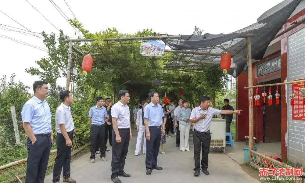 行走在郭土楼村宽阔、整洁的水泥村道上,两旁一个个由竹栅栏围城的小花园里,柳丝缠绵,月季吐蕊;山楂、核桃、柿子等果树硕果累累、香气诱人,一派生机盎然。在村子的中央广场上,一座竹制仿古建筑和挂在其正面墙壁上的一幅习近平总书记陪伴母亲散步的温馨照片以及“以孝治家”的大幅中堂对联版面,引得大家纷纷驻足观看。随后,大家先后参观了该村的孝贤胡同,民俗馆、记忆墙、敬老院、乡村书院等,并在红色文化广场合影留念。