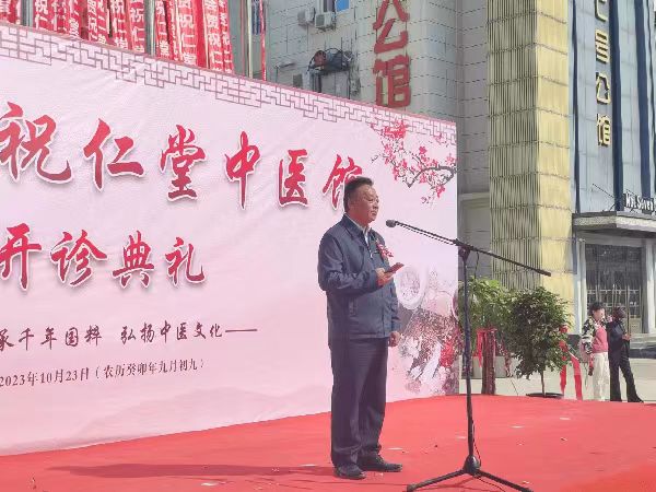 商丘市非公立医疗机构协会会长韩世洪在致辞中高度评价了祝仁堂中医馆的发展理念与运营模式,对祝仁堂中医馆董事长祝金良和总经理祝东亚的发展格局给予充分肯定。