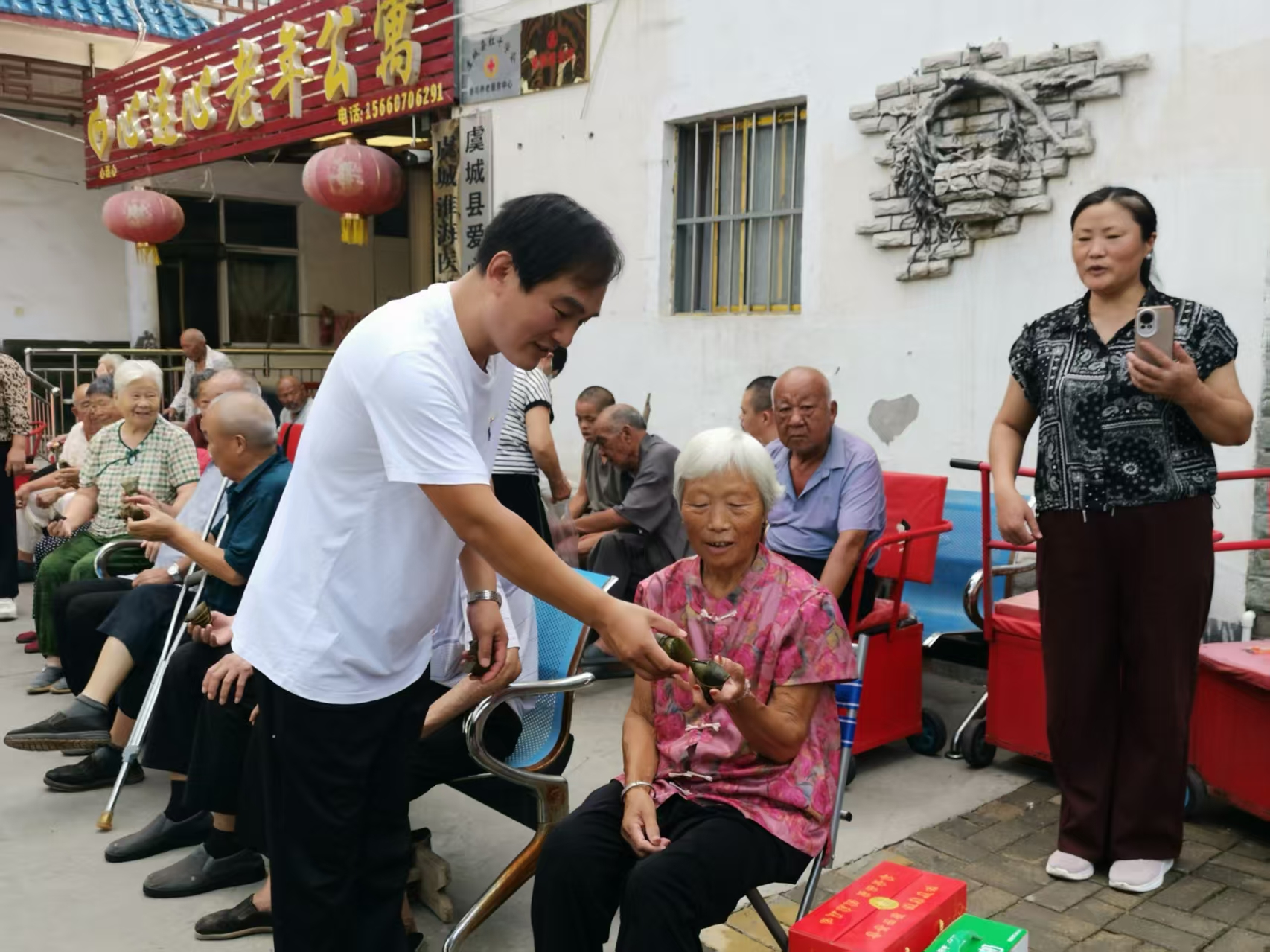 为弘扬尊老爱老的中华民族传统美德,传递社会大家庭的温暖,丁杰此次特意准备了手工水饺、石磨香油、大米、色拉油、纯净水等慰问品。在谷广存院长的陪同下,他先后走进老人们的生活区、游览区、健身区及伙房,仔细察看老人们的居住环境和生活设施。每到一处,他都俯下身与老人们促膝长谈,拉着老人的手询问身体状况、日常起居,倾听他们的心声,现场笑声不断,暖意融融。