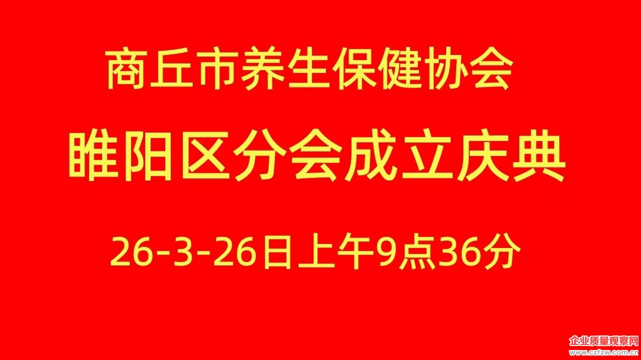 企业质量观察网.讯 记者:燕昊 通讯员: 周长志 王保庆 邓东莲 寇长升 刘杏丽 2026年3月26日中午,商丘市养生保健协会睢阳分会成立庆典仪式隆重举行,标志着商丘市养生保健行业在睢阳区的发展迈入全新阶段。本次庆典汇聚了商丘市各行业养生保健践行者,同时吸引了省内外多家新闻媒体记者到场见证,现场氛围庄重而热烈。
